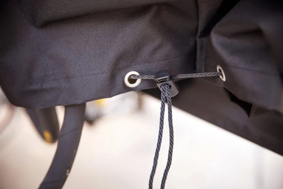 Once the cover is on your log splitter, simply pull the adjustable drawstring to ensure the bottom edge of the cover provides a tight fit around the log catchers, beam and engine. Champion’s versatile cover provides a secure fit for log splitters with and without log catchers. Fits log splitters up to 55 x 27 x 26 in.