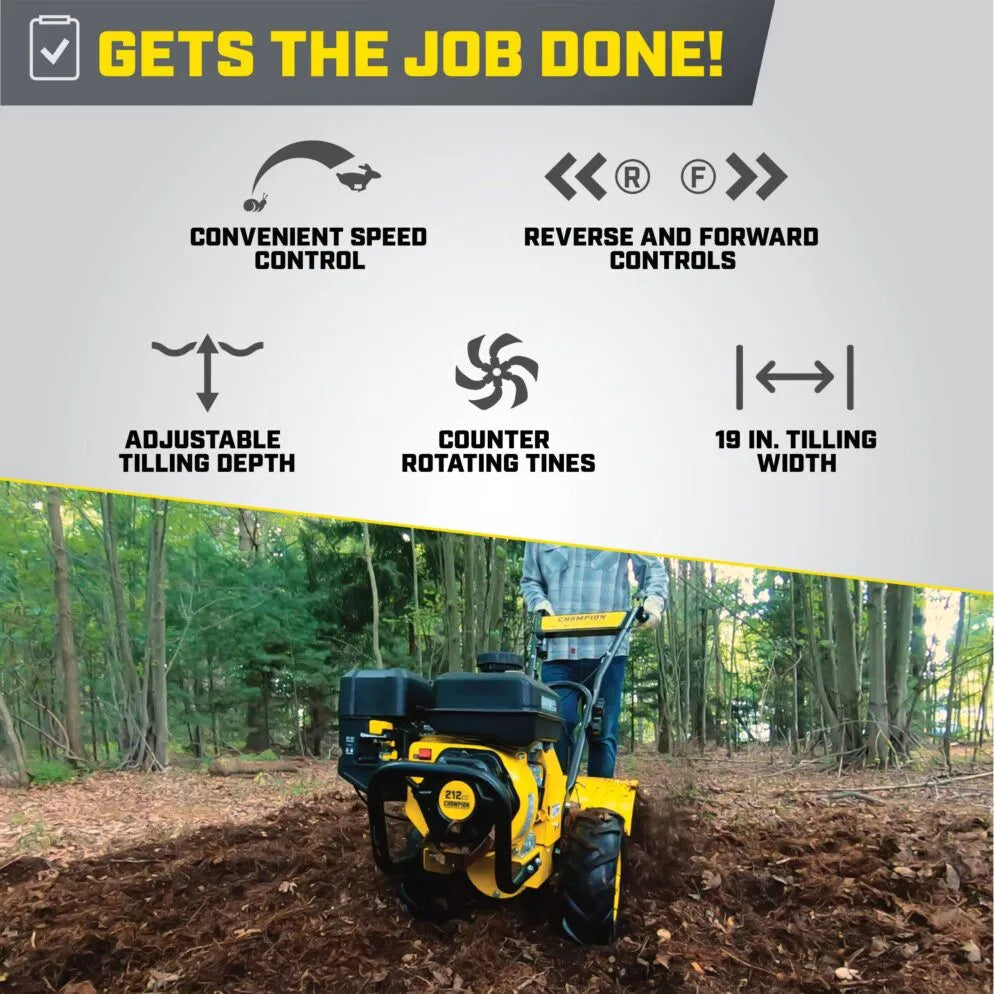 The Champion Power Equipment 201464 19-Inch Rear Tine Tiller is designed to be the workhorse behind your gardening passion. The perfect combination of power and performance, this machine will tame the toughest gardens for years to come.