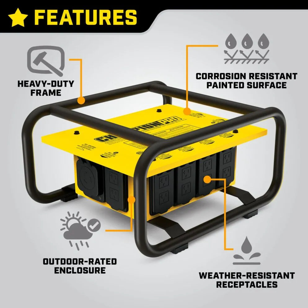 The Champion Power Equipment high-capacity power distribution box is perfect for construction sites, outdoor events, and wherever reliable power is a must. With 50A main inlet feeds and multiple receptacles, this unit is built to handle even the most demanding power needs in the toughest environments.